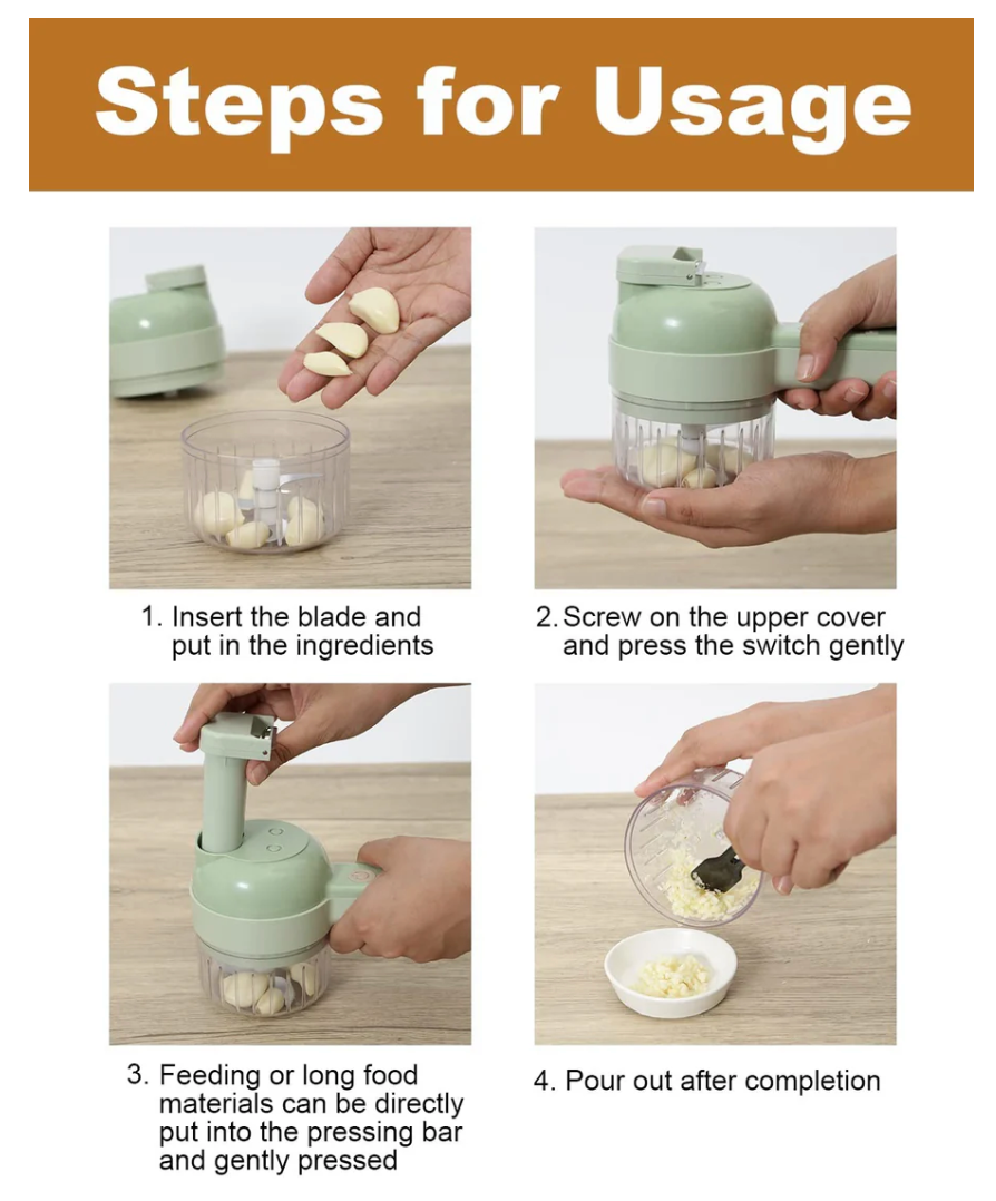 Product Name: 4 in 1 Portable Electric Vegetable Cutter Set, Wireless Food Processor Electric Food Chopper for Garlic Chili Pepper Onion Ginger Celery Meat with Brush